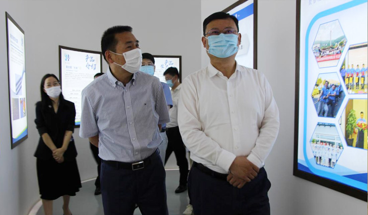 金書記一行參觀企業展廳中心時,詳細了解我司技術創新、產品應用、市場推廣和產業鏈動態等情況,仔細詢問企業當前防疫措施和今后發展規劃等問題。